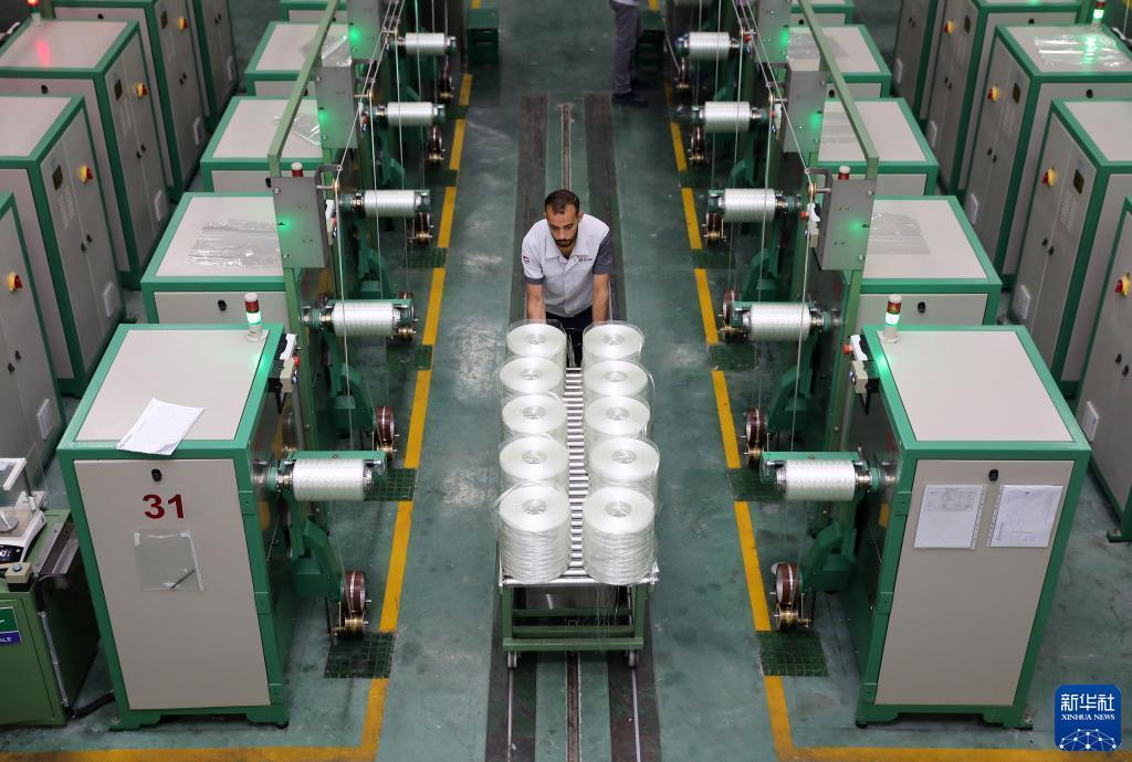 6月26日,在埃及苏伊士巨石埃及公司,员工在玻璃纤维生产线上工作。