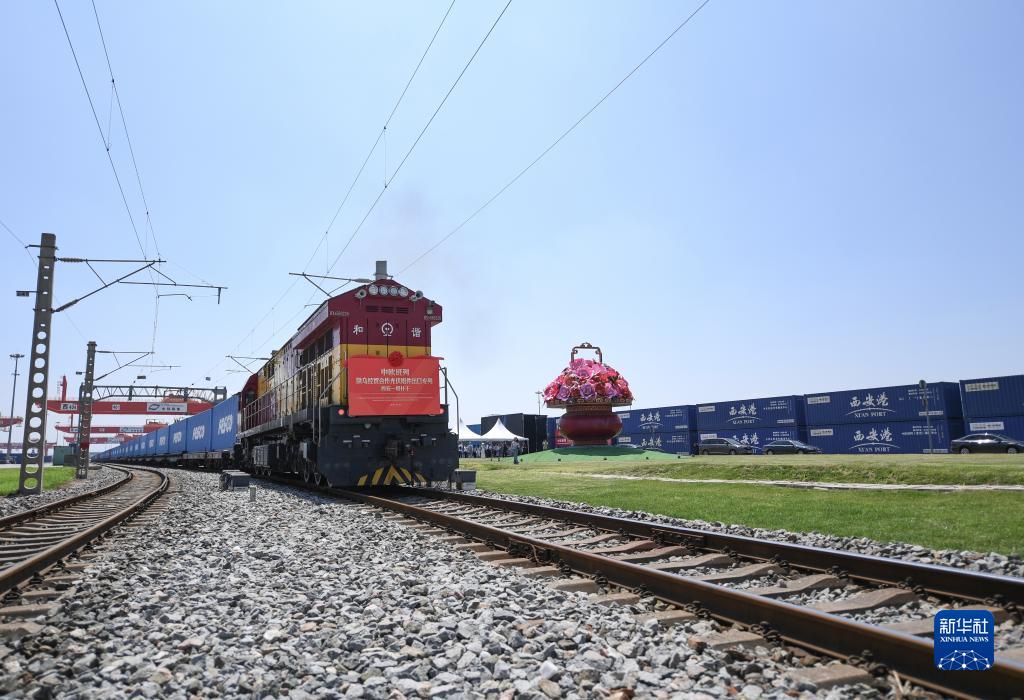 8月3日,中欧班列(西安-塔什干)陕乌经贸合作隆基绿能光伏组件出口专列从西安国际港站驶出。