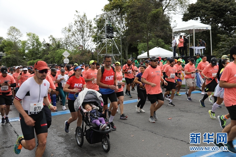 婴儿车里的小宝贝也来“参加”马拉松比赛。记者 唐薇 摄
