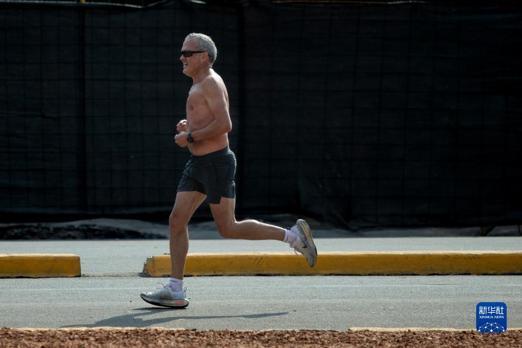 8月6日,一名男子在阿根廷首都布宜诺斯艾利斯的一处公园锻炼。