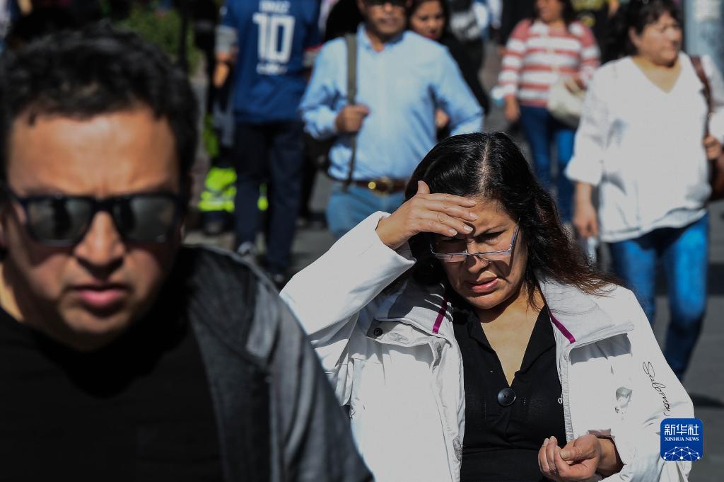 8月4日,行人在智利首都圣地亚哥街头用手遮阳。