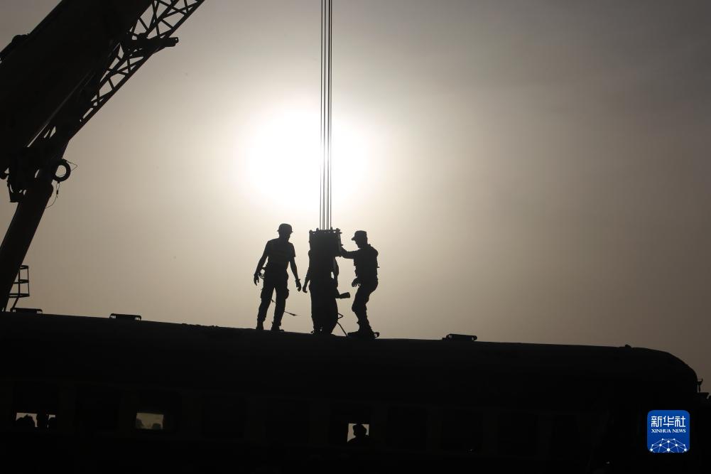 8月6日,救援人员在巴基斯坦南部信德省桑克尔地区的列车脱轨事故现场工作。