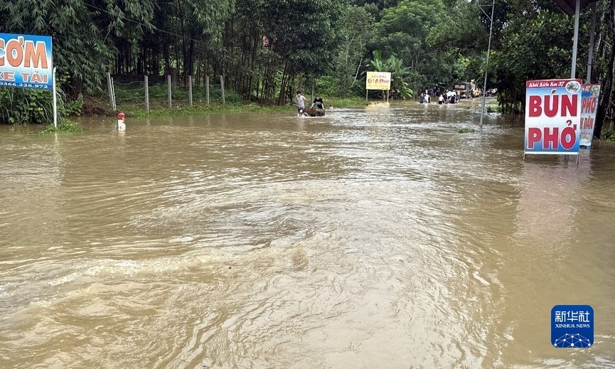 8月9日,在越南宣光省,部分路段被洪水淹没。