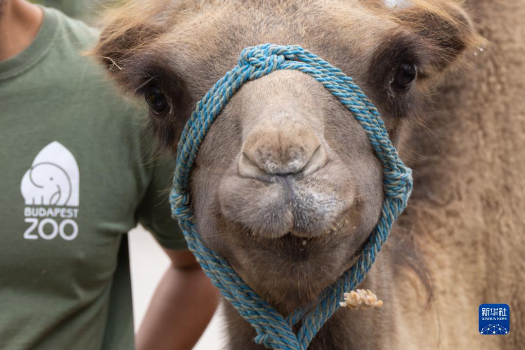 8月9日,在匈牙利布达佩斯动物园,骆驼品尝特制蛋糕。