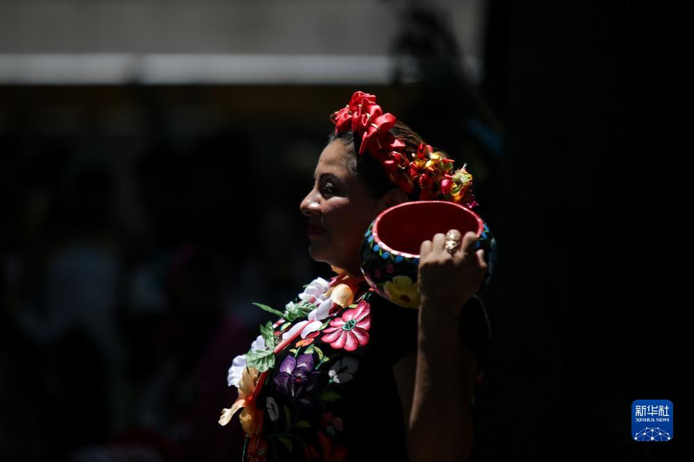 8月9日,在墨西哥首都墨西哥城,演员身着传统服饰参加世界土著人民国际日庆祝活动。