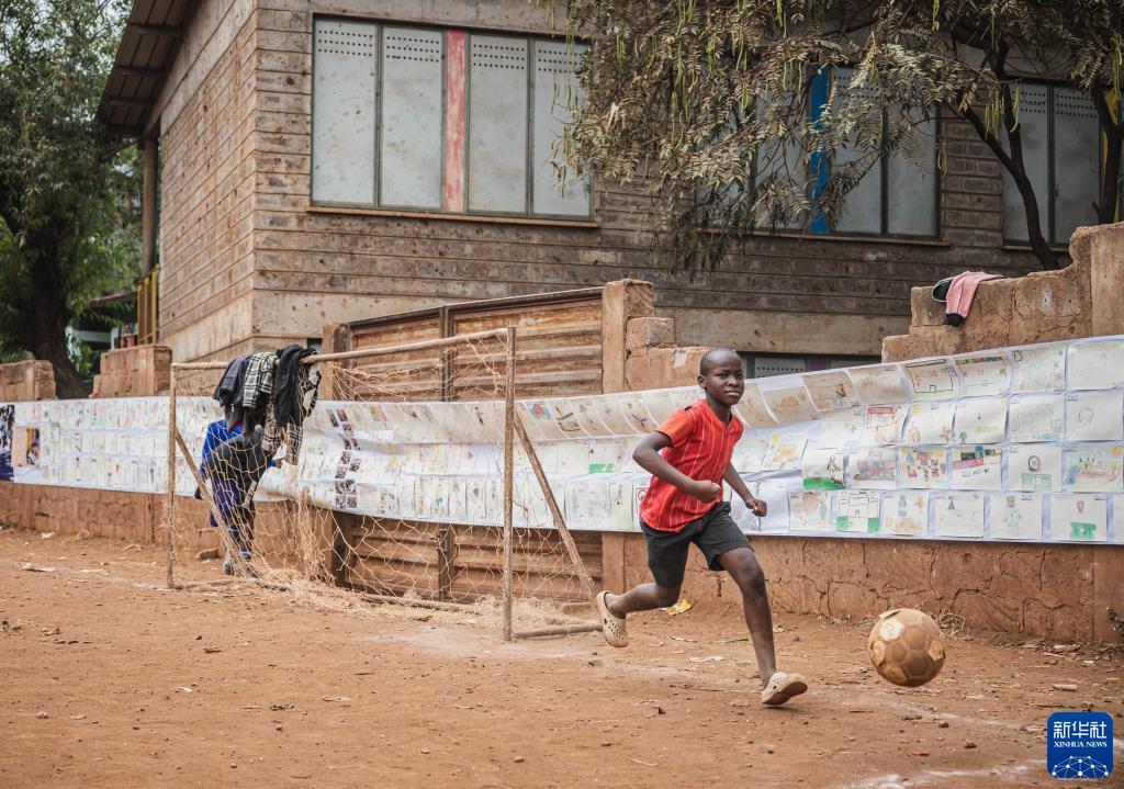 8月11日,在肯尼亚内罗毕的马萨雷贫民区,儿童在“贫民区嘉年华”活动上踢足球。