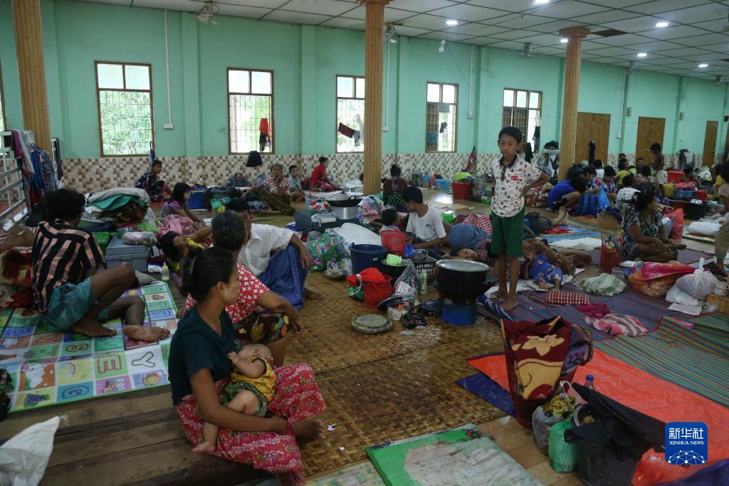 8月12日,人们在缅甸勃固省一处洪灾安置点休息。新华社发(苗觉梭摄)