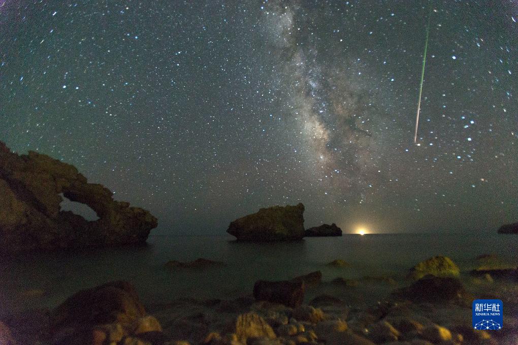 这是8月12日在希腊加夫多斯岛拍摄的英仙座流星雨。