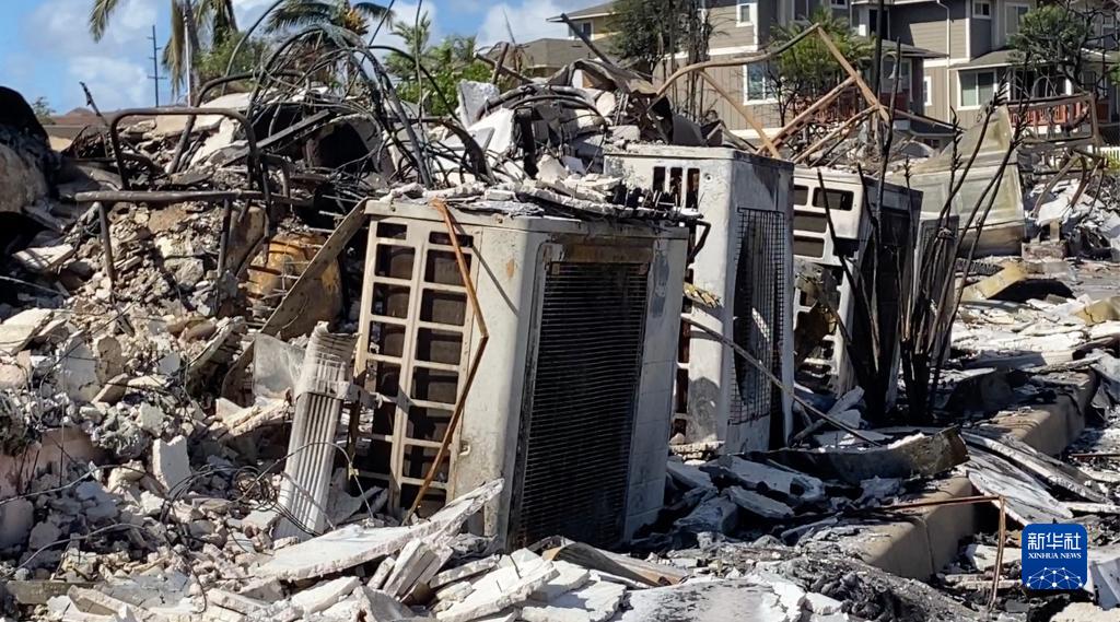 这是8月14日在美国夏威夷州毛伊岛拉海纳拍摄的野火烧毁的残骸。