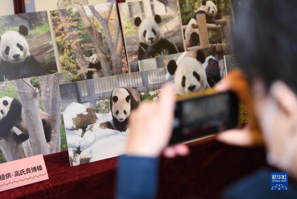 8月16日,在日本东京中国文化中心,前来庆生的民众在翻拍熊猫的照片。