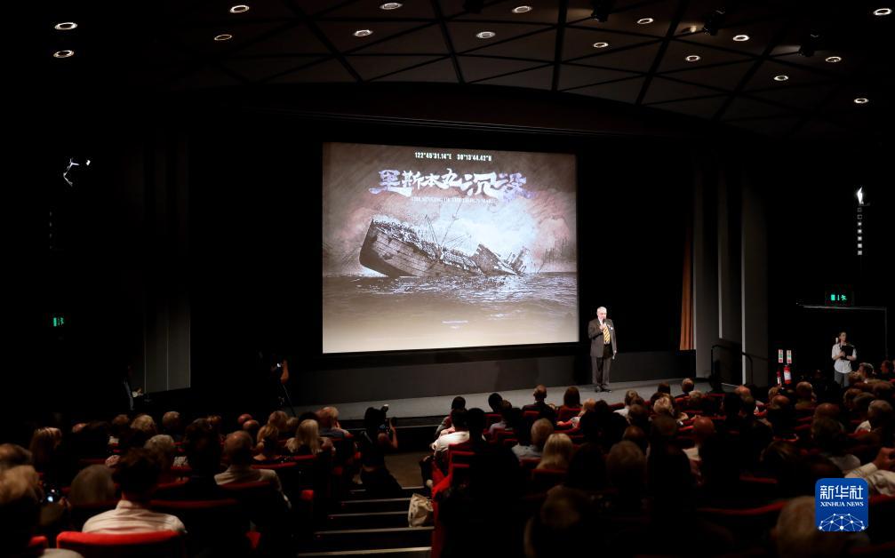 8月15日,在英国伦敦,长期致力于收集整理“里斯本丸”号事件资料的英国退役军官费恩祺在放映活动上发言。