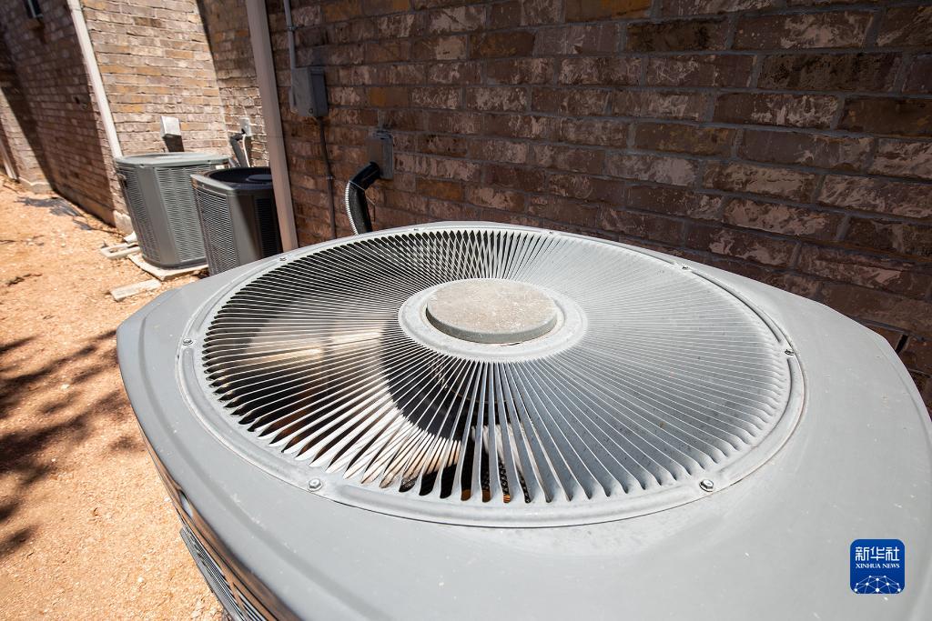这是8月17日在美国得克萨斯州弗里斯科市拍摄的三台高速运转的空调。