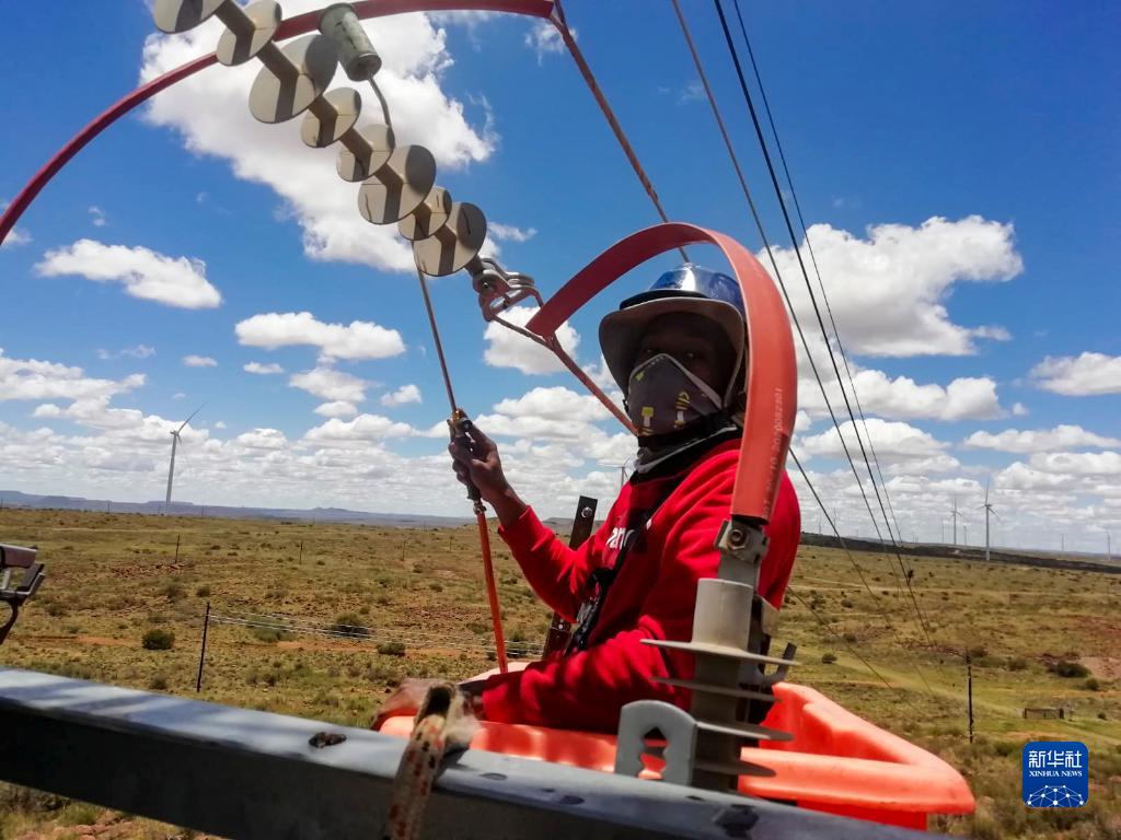 2021年12月24日,在南非北开普省德阿镇,达斯温·巴松实习期间在德阿风电项目学习电缆维护。