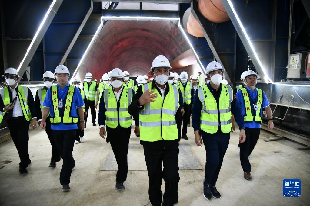 8月17日,泰国总理巴育(前)在沙拉武里府视察中泰铁路施工段。