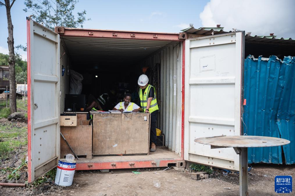 5月26日,施工人员在肯尼亚纳库鲁市的索西安地热电站项目建设现场进行仓库工器具定期检查。新华社记者 王冠森 摄