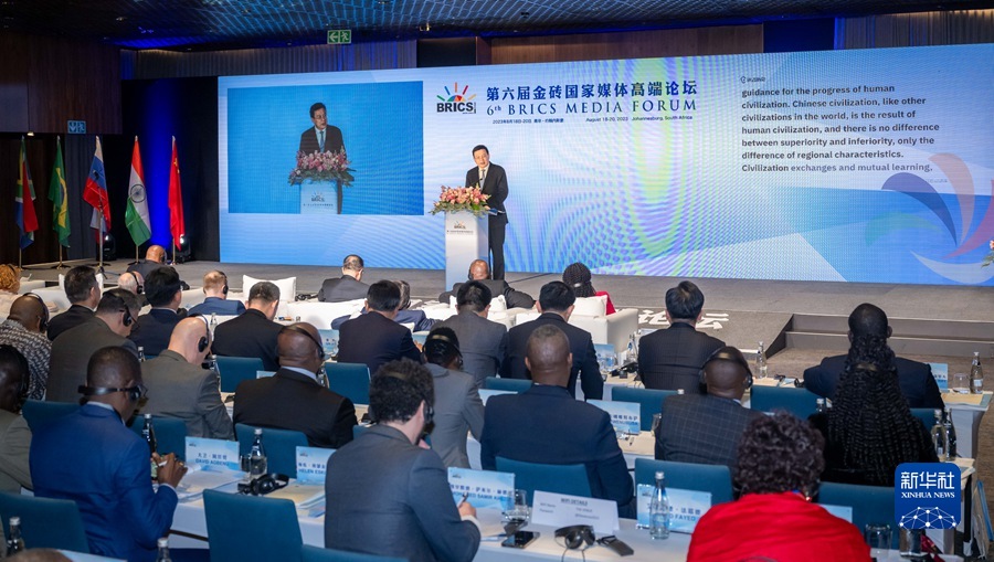 8月19日,金砖国家媒体高端论坛执行主席、新华通讯社社长傅华在第六届金砖国家媒体高端论坛智库报告发布暨研讨会上进行主旨发言。