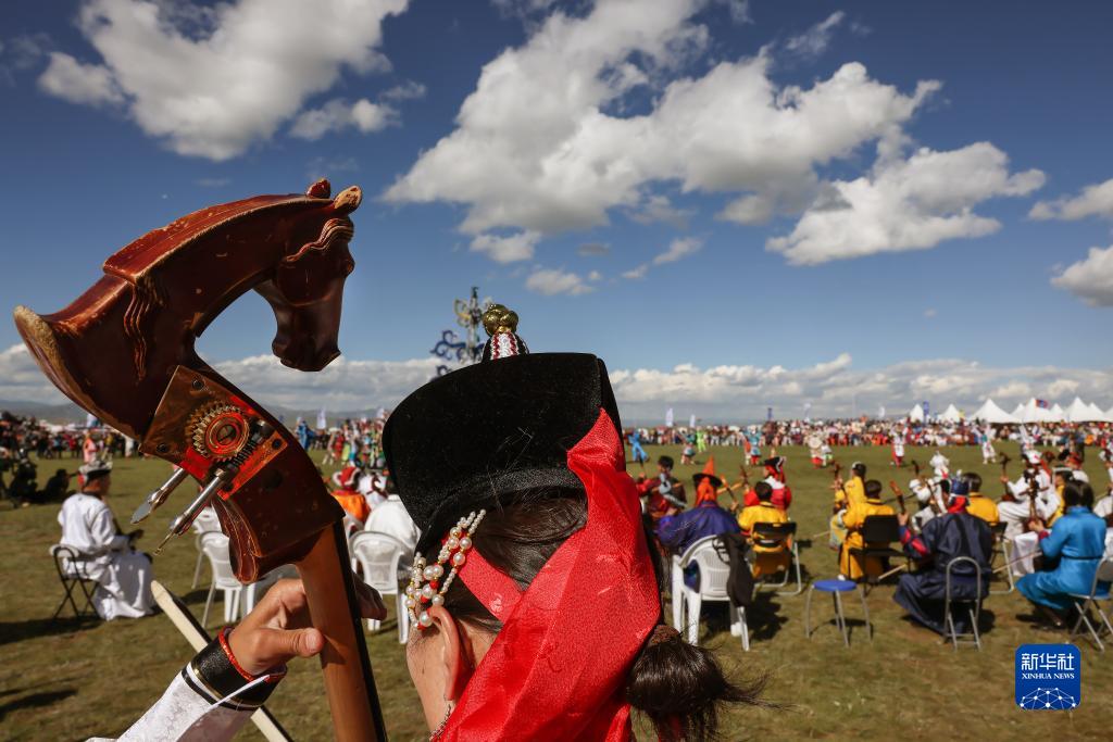 8月18日,在蒙古国泰吉山谷,文化节开幕式上演员在演奏马头琴。