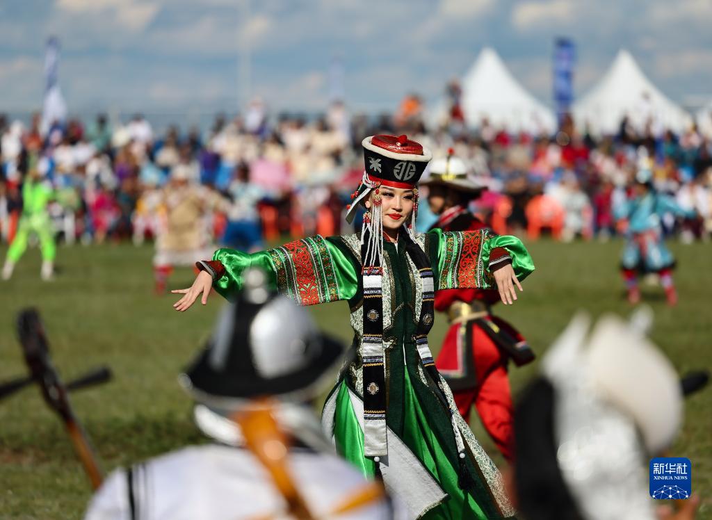 8月18日,在蒙古国泰吉山谷,演员在文化节开幕式上表演文艺节目。