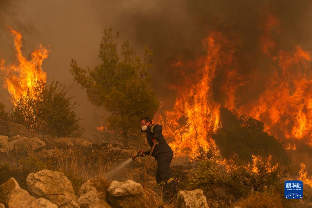 8月22日,消防员在希腊首都雅典附近的查西亚村灭火。