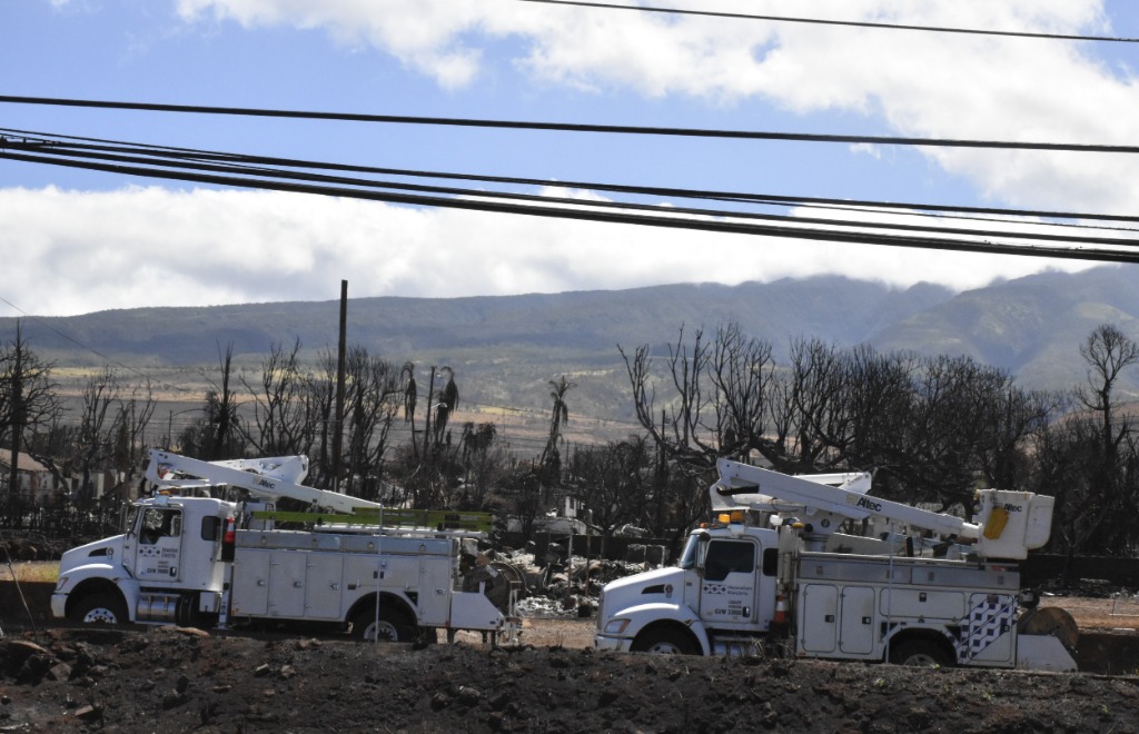 这是8月22日在美国夏威夷州拉海纳镇拍摄的修复工程车辆。新华社发(曾慧摄)