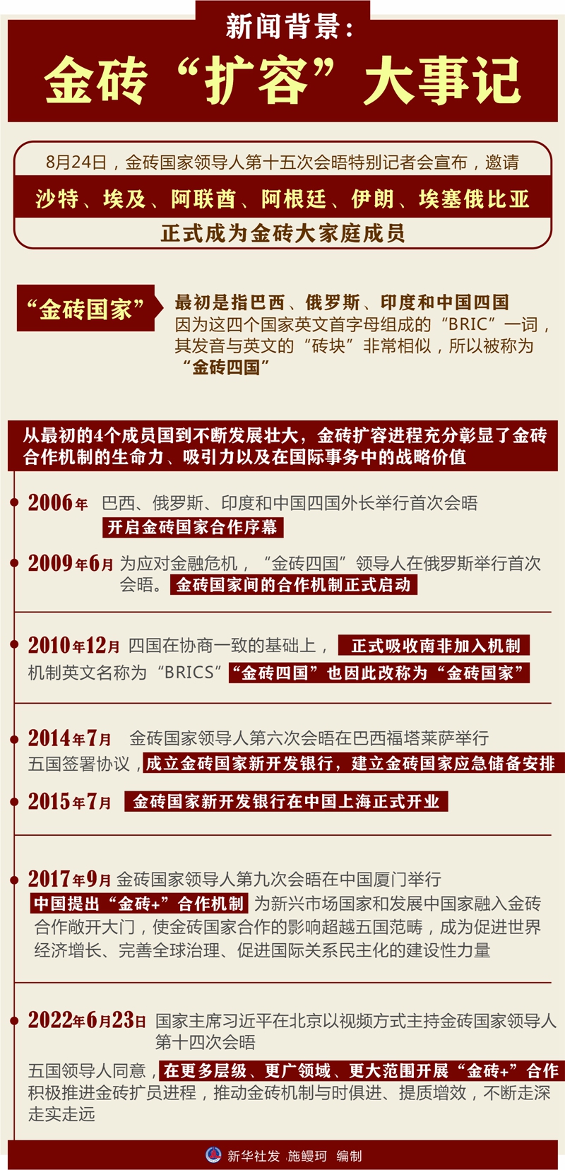新华社北京8月24日电 新闻背景:金砖“扩容”大事记