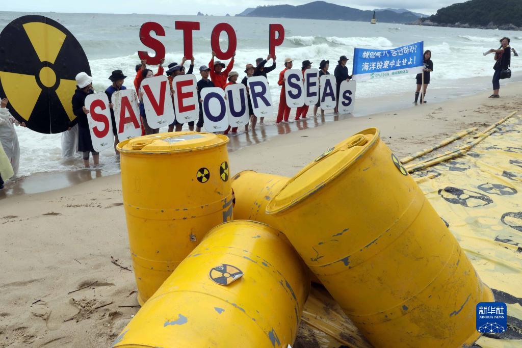 8月24日,韩国市民团体在釜山海云台海水浴场集会,抗议日本核污染水排海。