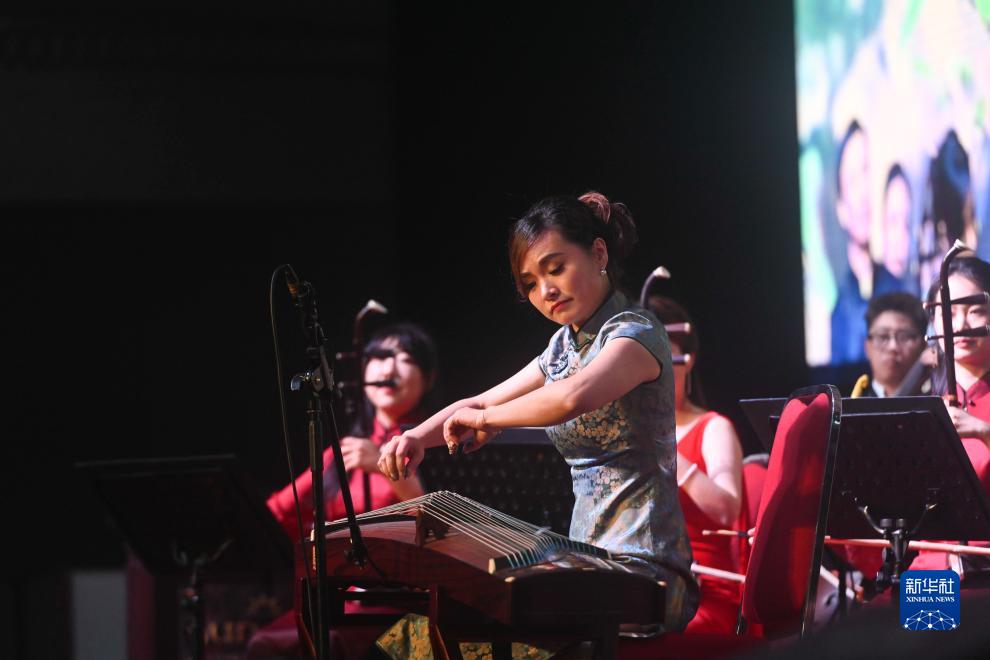 8月24日,在印度尼西亚雅加达太阳城,演奏者表演古筝独奏《秦桑曲》。