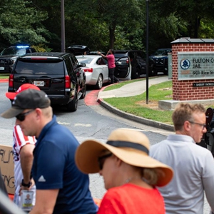 8月24日,警察在美国佐治亚州亚特兰大市富尔顿县拘留所外警戒。