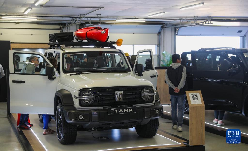 8月27日,在南非约翰内斯堡,参观者在长城展厅参观展车。