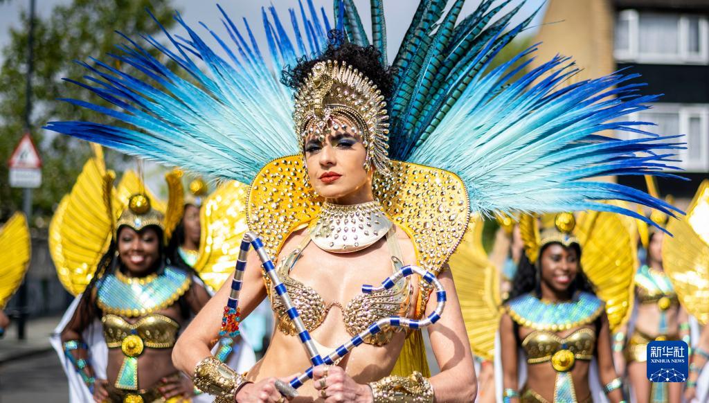 8月28日,表演者在英国伦敦参加诺丁山狂欢节。