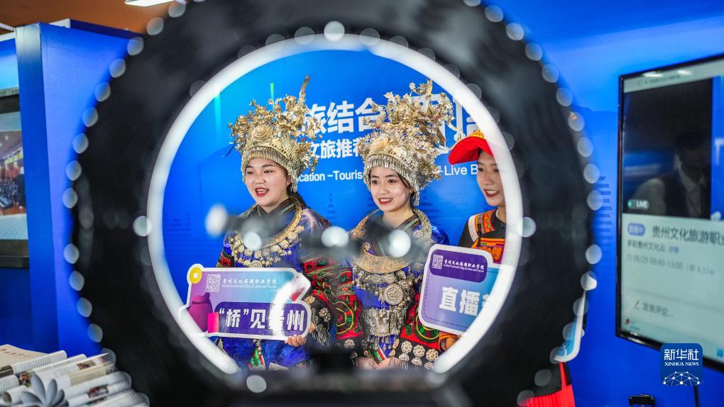8月29日,贵州文化旅游职业学院学生在交流周活动上进行直播。