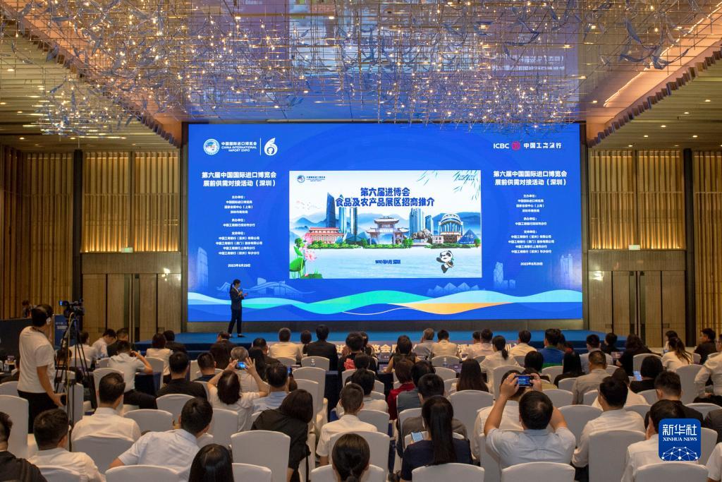 8月29日,在深圳举行的进博会展前供需对接活动上,工作人员进行招商推介。