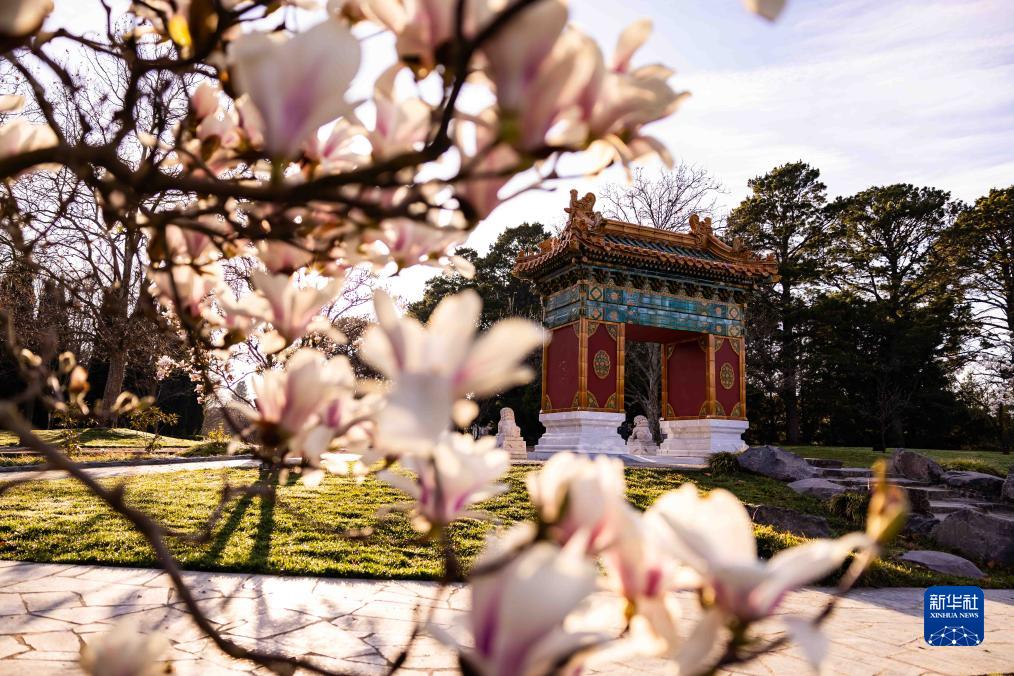 这是8月30日在澳大利亚堪培拉的北京花园拍摄的玉兰花。