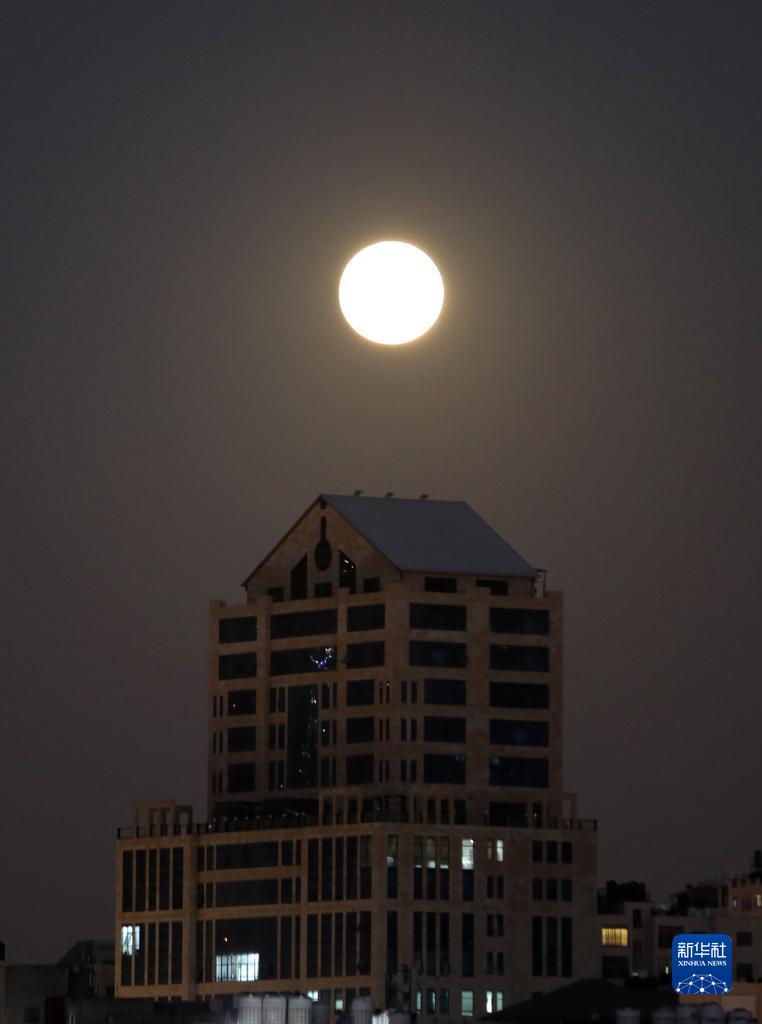 这是8月30日在纳布卢斯拍摄的“超级月亮”。
