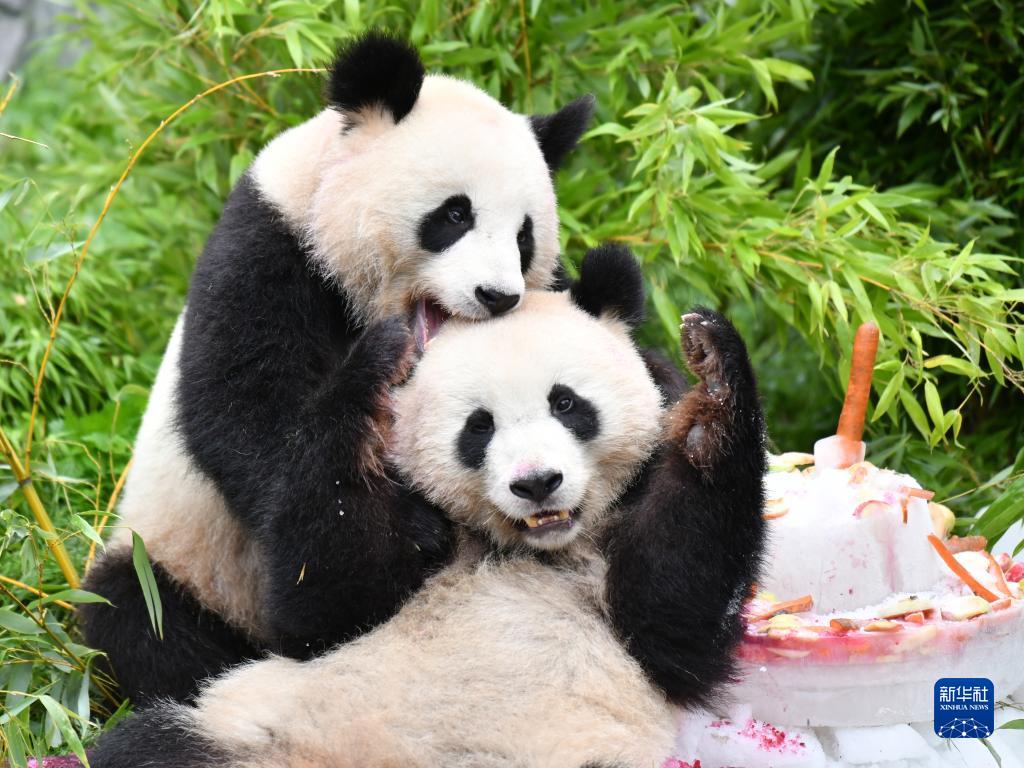 当日,在德国出生的大熊猫双胞胎兄弟“梦想”和“梦圆”迎来4岁生日,柏林动物园为它们举办了庆祝活动。