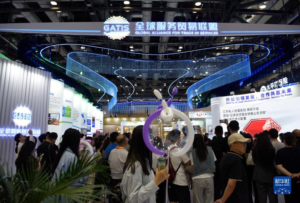 9月4日,观众在服贸会的全球服务贸易联盟展台参观。