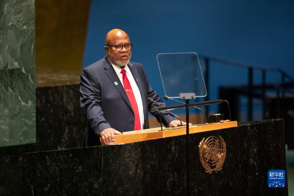 9月5日,在位于纽约的联合国总部,第78届联合国大会主席丹尼斯·弗朗西斯在新一届联大第一次全会上致辞。