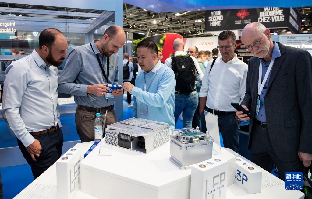 9月5日,人们在德国慕尼黑国际车展的宁德时代展区咨询洽谈。