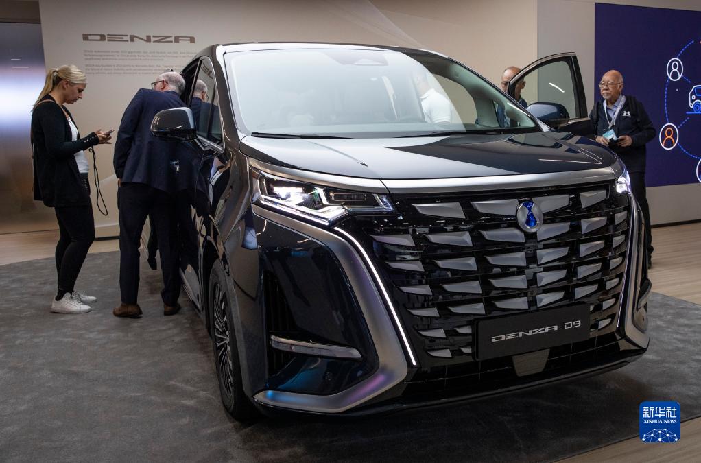 9月4日,在德国慕尼黑国际车展媒体预展上,人们在比亚迪品牌发布会现场体验腾势D9汽车。
