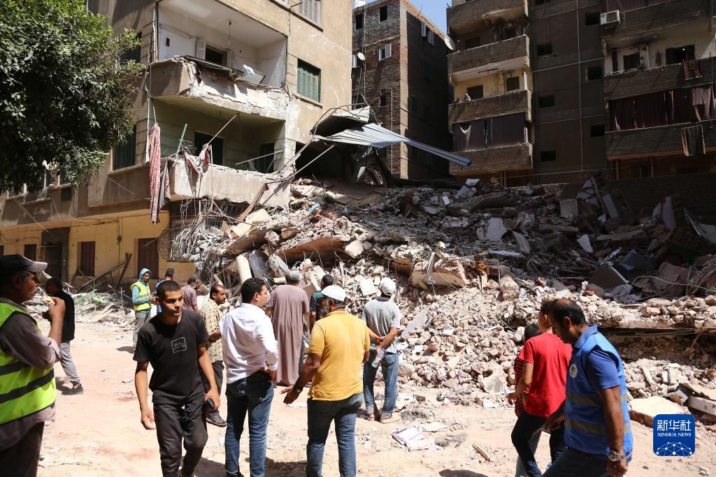9月6日,人们聚集在埃及开罗的楼房倒塌现场附近。