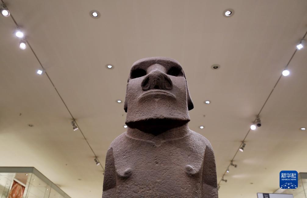 这是9月7日在英国伦敦大英博物馆拍摄的“摩艾”石像。