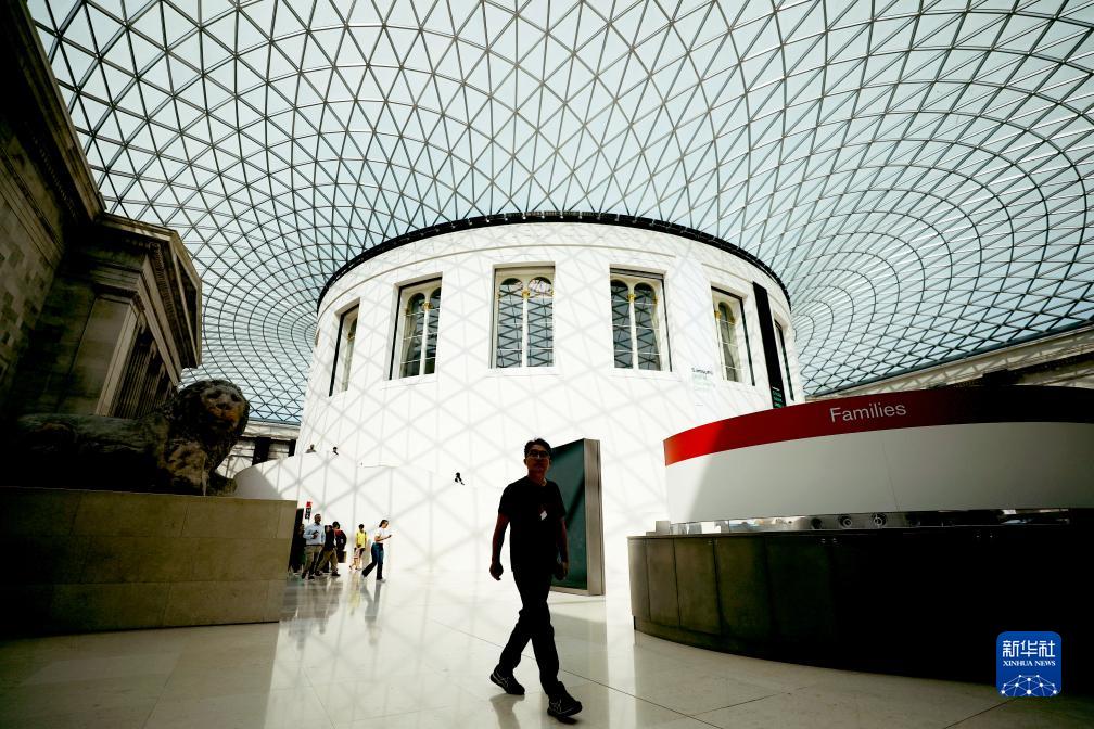 9月7日,人们在英国伦敦大英博物馆中参观游览。