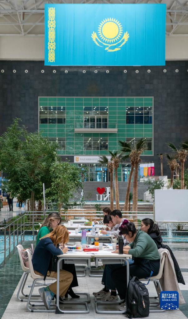 9月6日,学生在哈萨克斯坦首都阿斯塔纳的纳扎尔巴耶夫大学校园中学习。