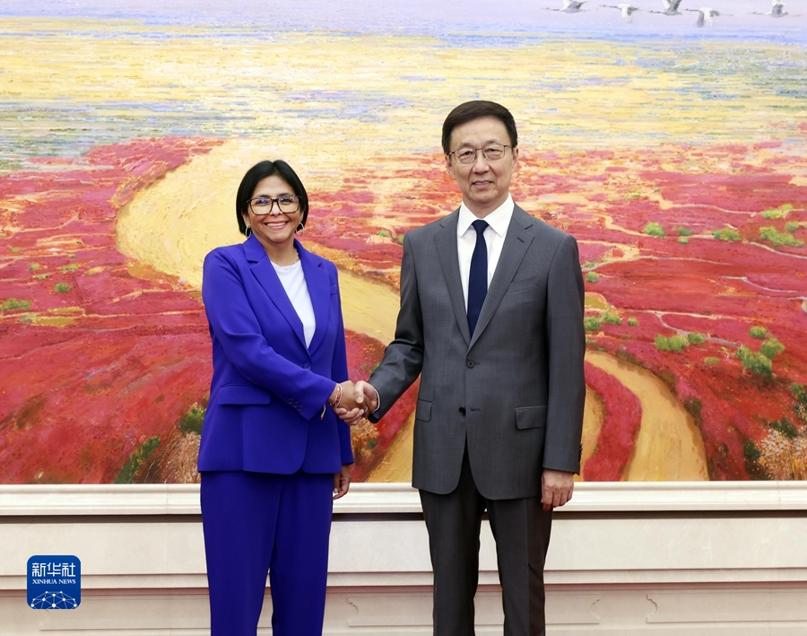 韩正表示,近年来,在习近平主席和马杜罗总统的战略引领和亲自关心下,中委之间的“铁杆”友谊更加深厚。两国在国际和地区事务中密切协调配合,相互坚定支持,共同反对霸权主义、单边主义。下阶段,双方要以马杜罗总统访华为契机,落实好两国元首达成的重要共识,坚定支持彼此的核心利益,筑牢中委务实合作的根基,充分用好中委高委会机制,推动双方各部门、机构和企业形成合力,促进中委务实合作走深走实。