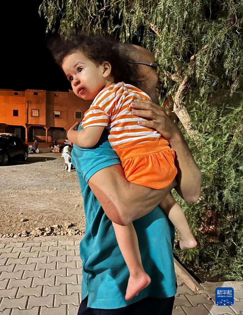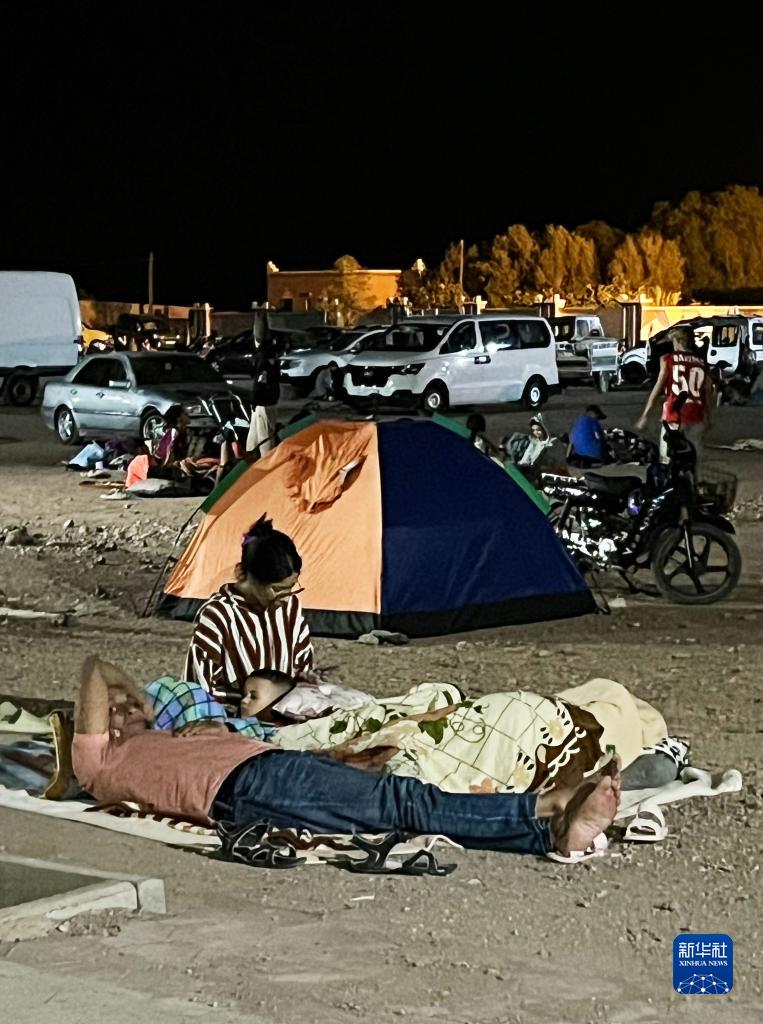 9月9日凌晨,在距离震中200多公里的摩洛哥瓦尔扎扎特市,居民来到户外避险(手机照片)。 新华社记者 王东震 摄