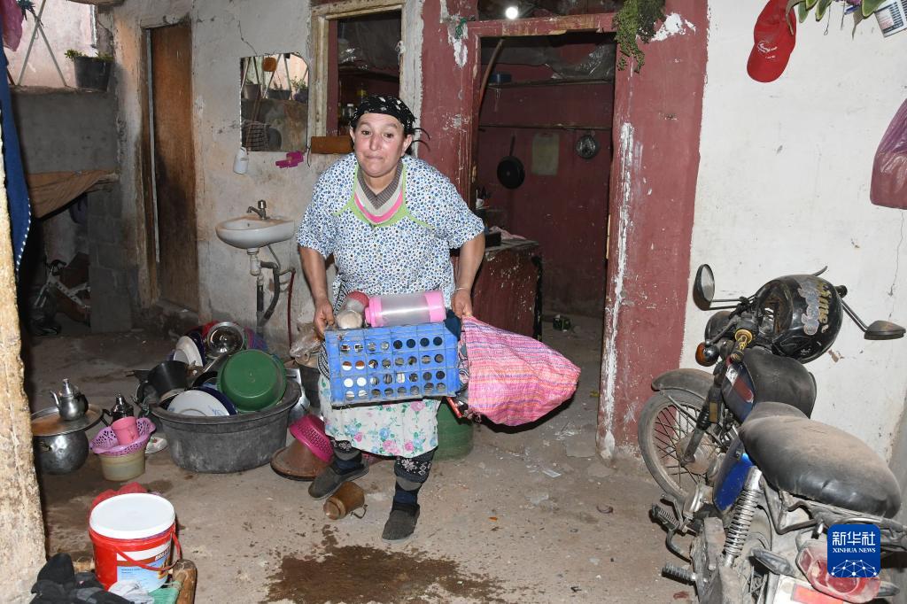 9月9日,在摩洛哥马拉喀什附近,居民在家中进行清理善后工作。