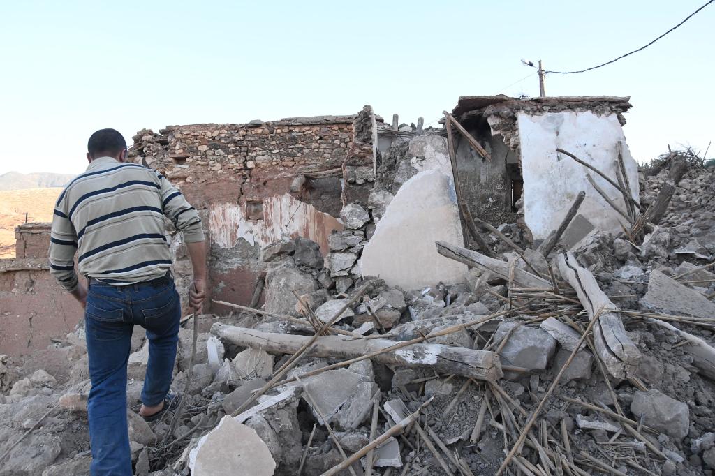 9月9日,在摩洛哥马拉喀什附近,居民走在遭地震损毁的建筑废墟上。新华社发(艾萨摄)