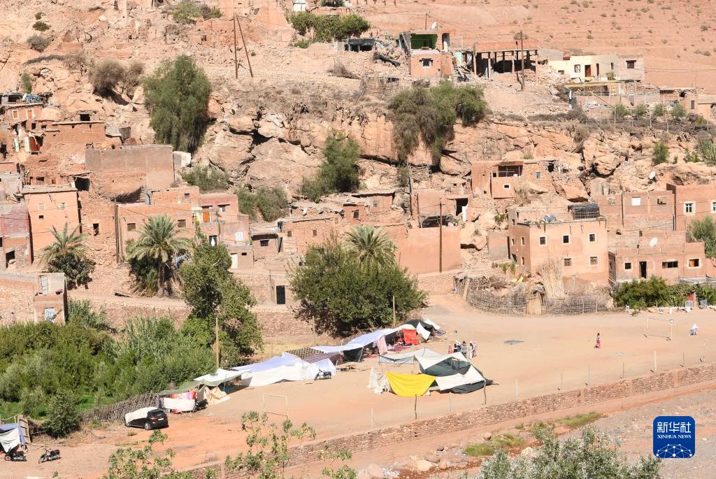 这是9月10日在摩洛哥震中附近的艾兹鲁村拍摄的一处临时安置点。