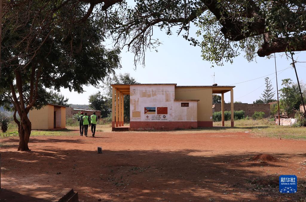 7月26日,在莫桑比克马普托省戈巴村,瓜达吉亚与同事前往查看中国援助的卫星电视设备。