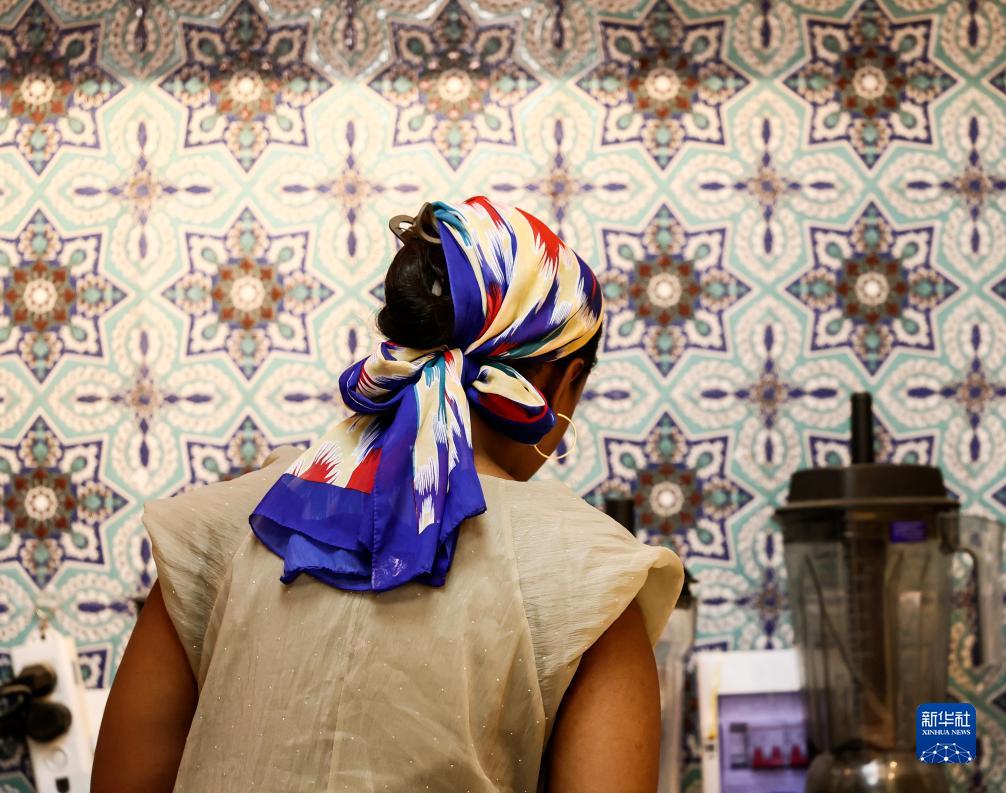 海迪雅在自家咖啡馆内制作饮品(9月7日摄)。